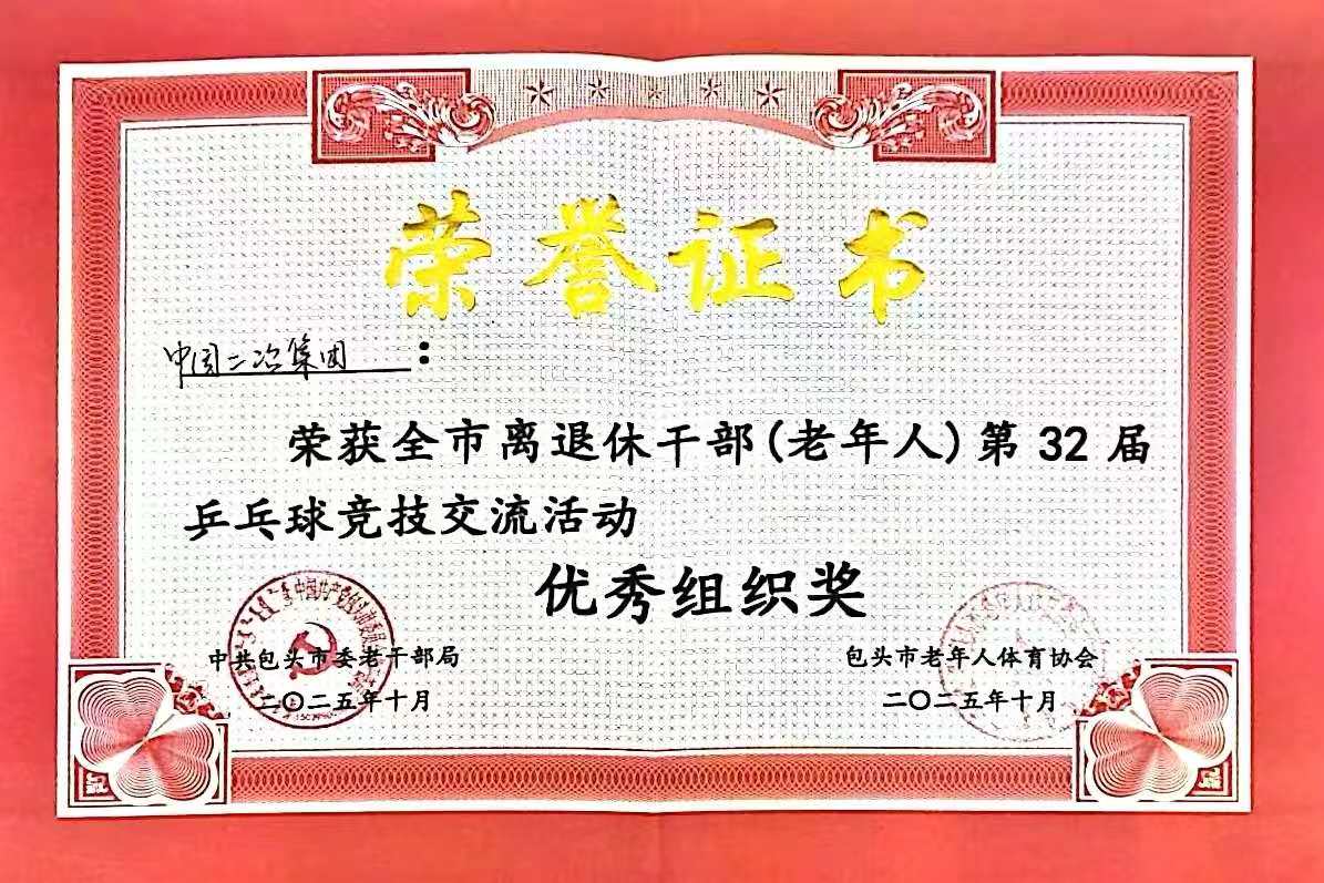 近日,由包頭市委老干部局、市老年人體育協會主辦,市老干部活動服務中心承辦的全市離退休干部(老年人)第32屆乒乓球競技交流活動圓滿結束,中國二冶在此次活動中成功斬獲優秀組織獎與女子團體三等獎兩項榮譽。
