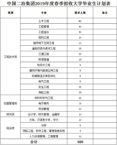 公司計劃2019年春季招收應(yīng)屆畢業(yè)生共計400人(詳見附件1)。