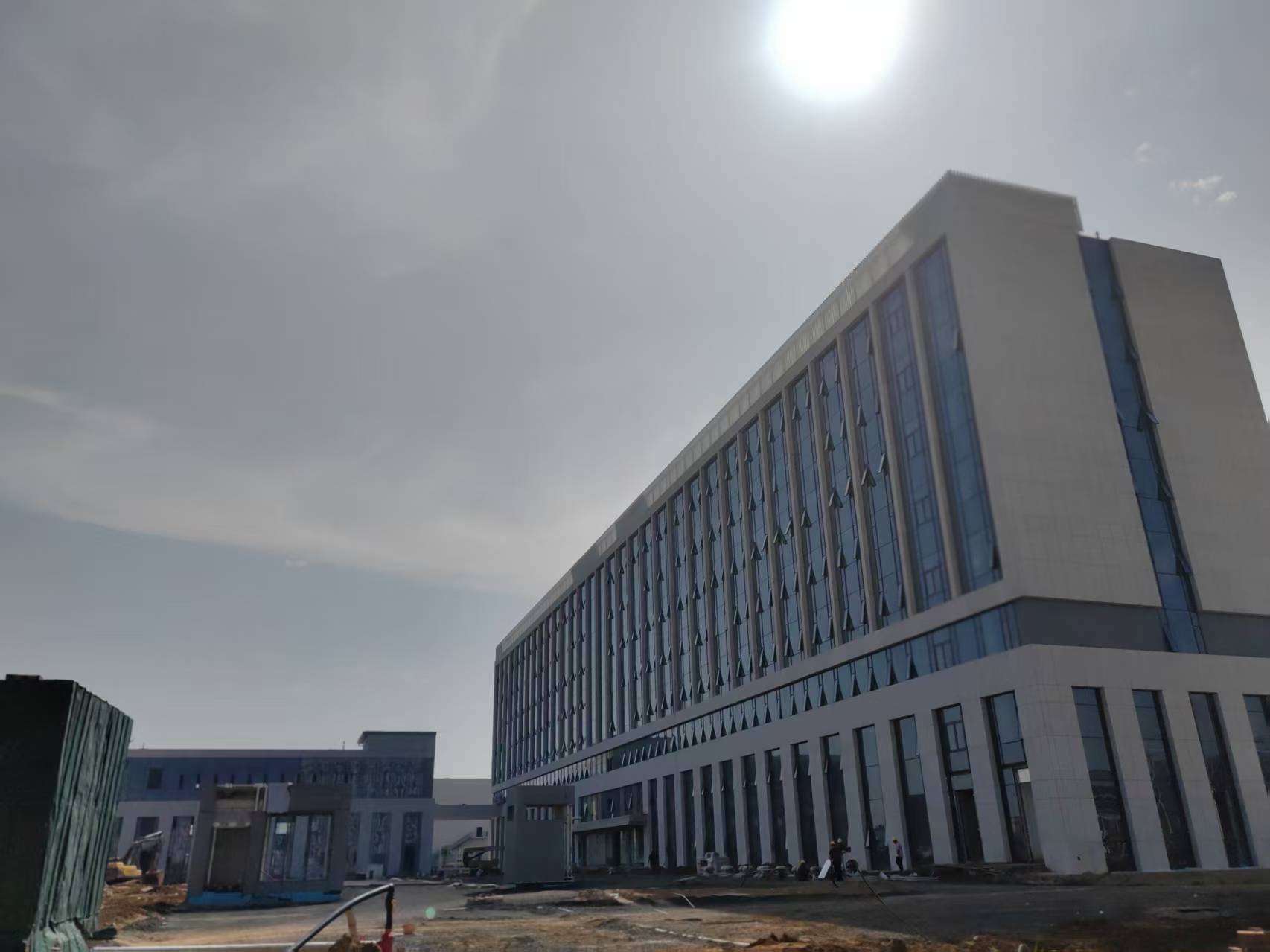 7月28日,城建分公司呼和浩特新機場航站區配套設施業務用房項目幕墻施工完成。