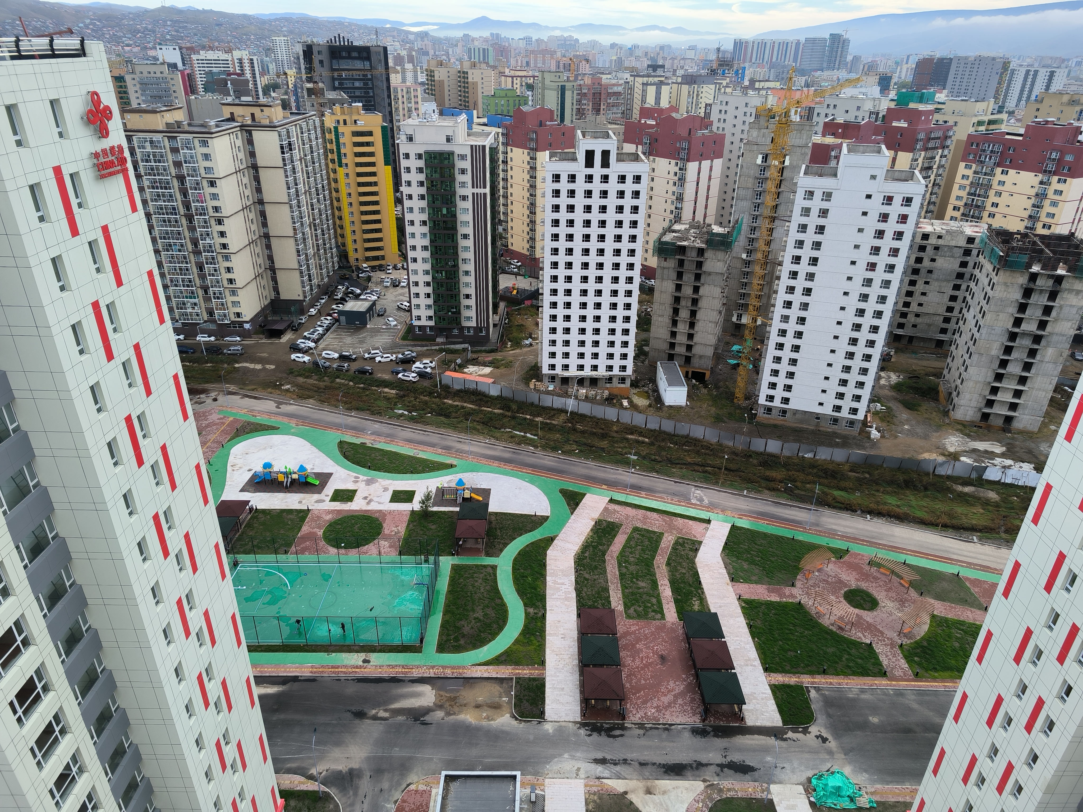 9月12日,中國二冶蒙古國棚戶區(qū)改造項(xiàng)目景觀綠化工程全面完成。