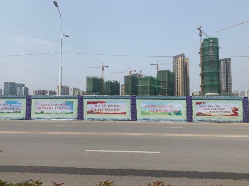 山東分公司青島興源巴黎城項(xiàng)目部為弘揚(yáng)公益事業(yè),彰顯企業(yè)擔(dān)當(dāng),以亮化施工環(huán)境、提升企業(yè)形象為抓手,對(duì)施工區(qū)域圍擋進(jìn)行全面改造,對(duì)原全封閉圍擋增加了柱體支撐,設(shè)置了出風(fēng)口,更換了以公益廣告為內(nèi)容的宣傳彩繪畫布。項(xiàng)目所在地膠州市溫州路300米路段為之煥然一新。