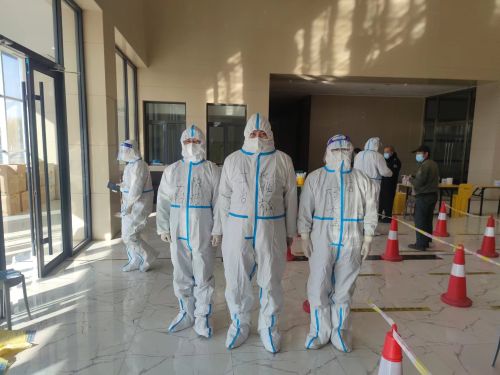 11月4日,項目部派出三名具有核酸檢測經驗的志愿者,配合九原區管委會進行核酸檢測排查工作。凌晨四點,三名志愿者頂著寒風出發,“有需要,我們就在。”在接到參與志愿服務的消息后,已經回家的志愿者們紛紛從家趕到項目部與大家集合,只為第二天提早趕到現場做好相關準備工作。在現場,志愿者們搭帳篷、設立采樣點、做好人員、物資、場地等各項統籌調配工作,并在檢測開始前進行最后的查漏補缺,反復向各個點位的工作人員落實具體任務,將各項細節工作做到位、做扎實,以防突發事件發生。隨后,居民們陸續趕來排隊做核酸檢測。面對天氣寒冷、參檢人數多的困難,志愿者們連續工作6個小時不停歇,充分展現出央企員工的責任與擔當。