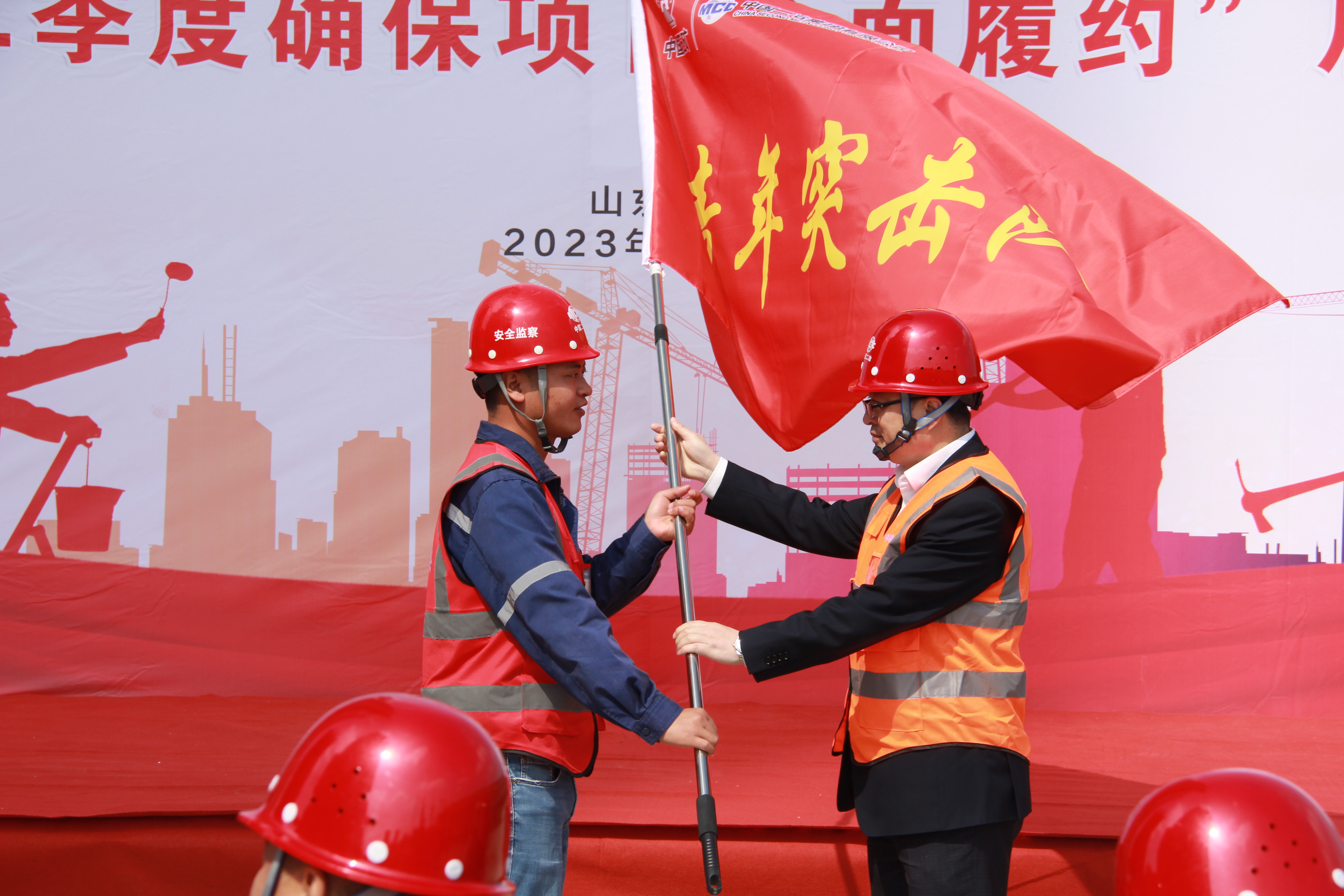 分公司總工程師陳曦向后魏華莊項目授“青年突擊隊”旗幟