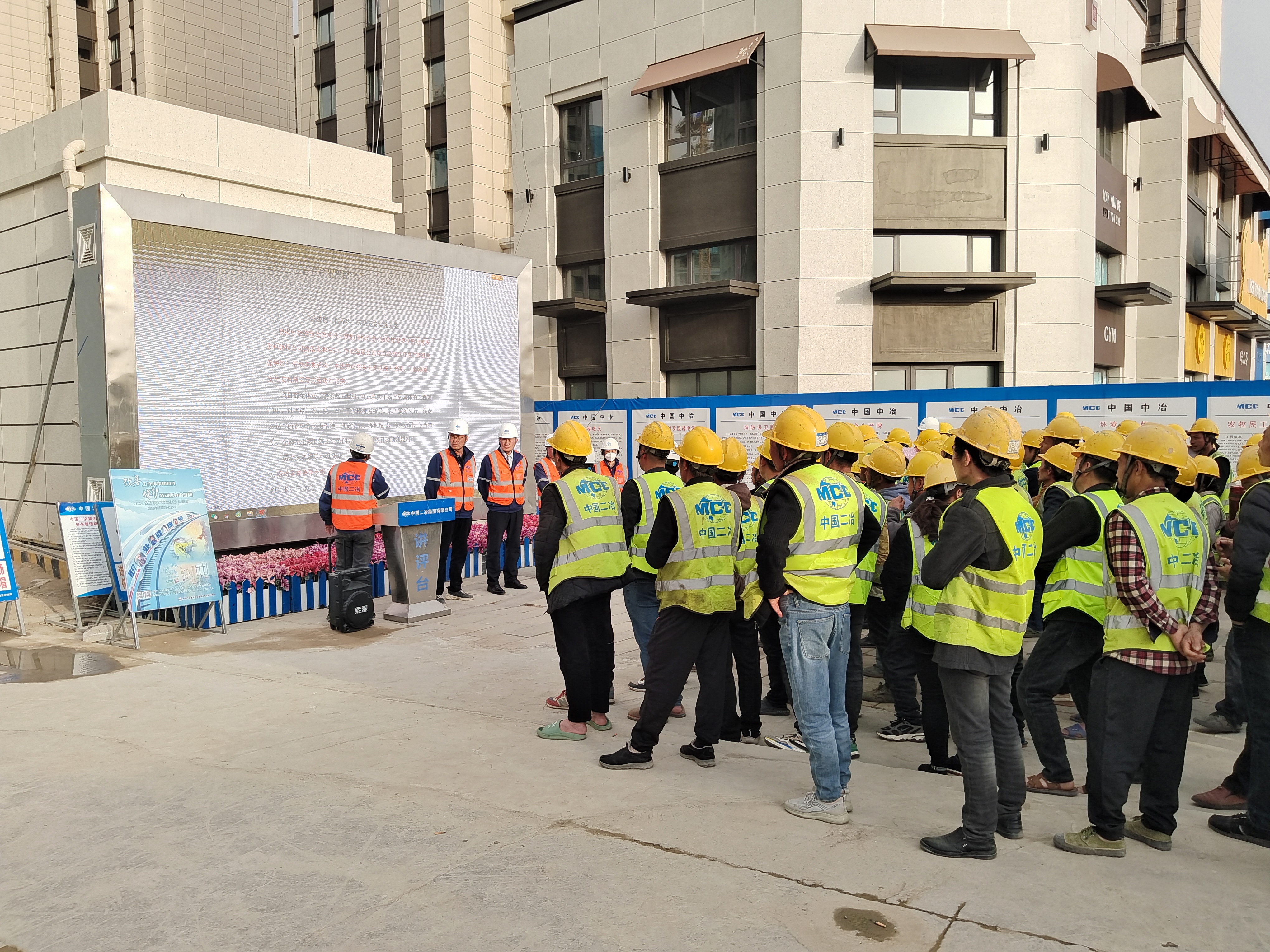 會上,項目經理宣讀了“勞動競賽實施方案”,并指出開展此項活動,旨在動員和激勵管理人員 、作業人員鼓足干勁,確保項目實現時間過半、任務過半的節點目標。并對勞動競賽的具體實施,提出如下要求:一是促生產,嚴格保證6.30南區竣工驗收及北區主體結構封頂的節點目標不能變;二是保安全,牢固樹立安全生產的底線思維和紅線意識;三是強質量,強化央企鑄造精品住宅的責任感和使命感。