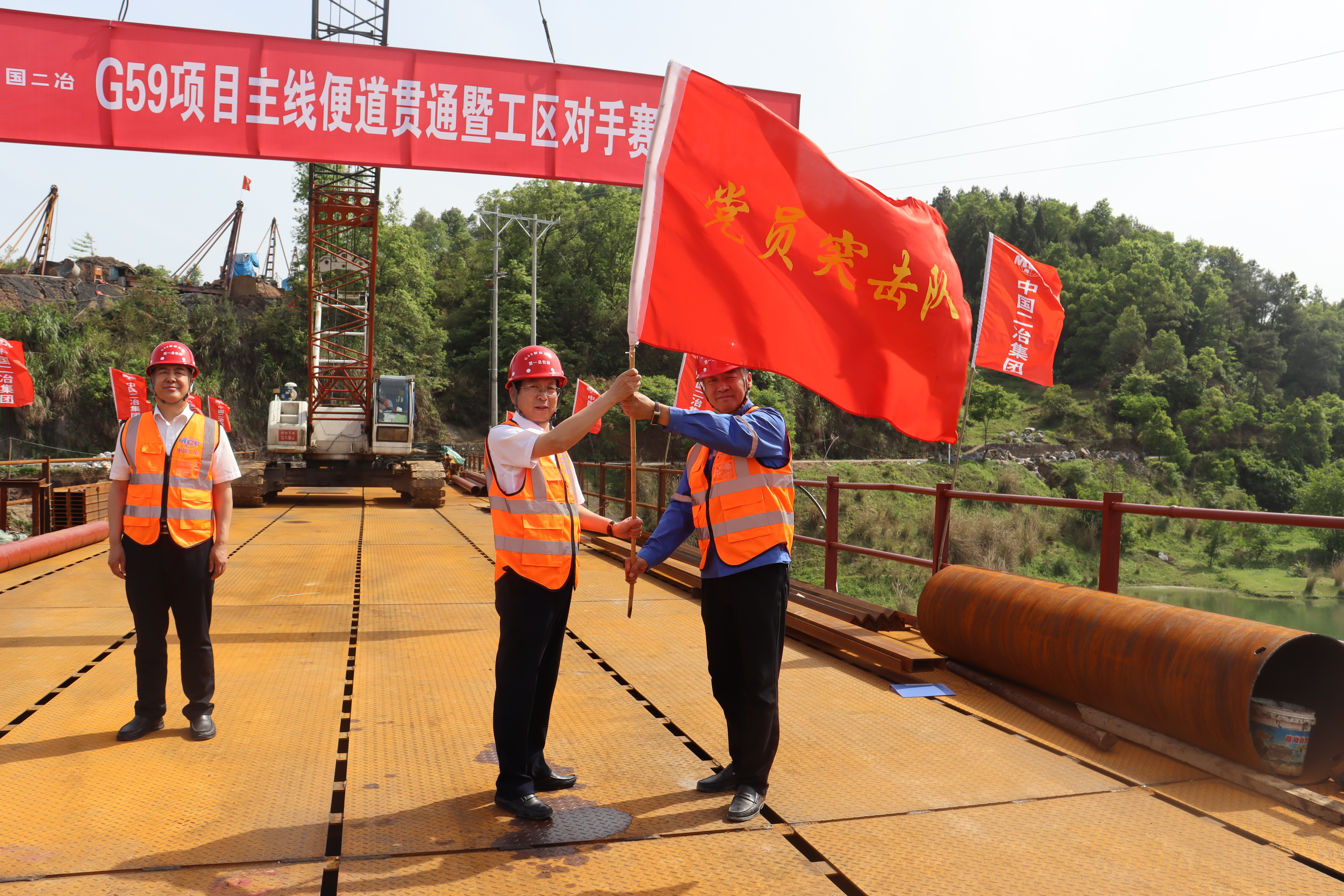 4月30日,路橋分公司G59新新高速項目“主線便道貫通暨工區對手賽”啟動儀式暨企業開放日活動在赧水特大橋鋼棧橋上舉行。分公司黨委書記郭泗東、總會計師王文通及分公司副總經理兼G59項目部經理張勇參加啟動儀式。業主單位、監理單位、分包單位、政府代表及多家主流媒體記者共計70余人參加活動。